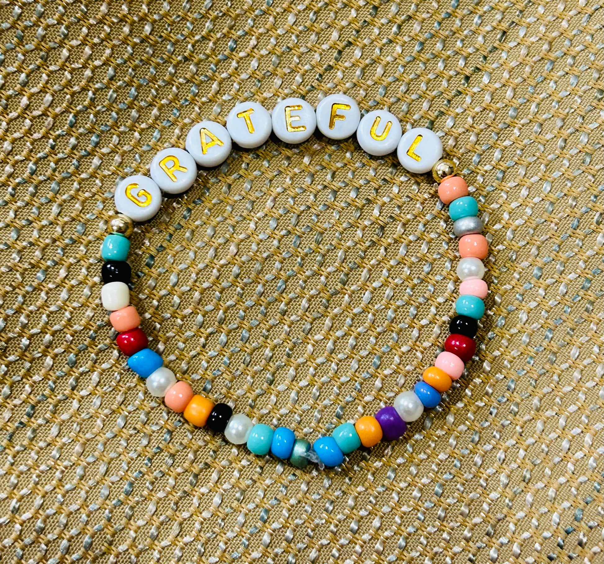 This adorable glass bead and gold bracelet is perfect to dress up or down for your any day wear.