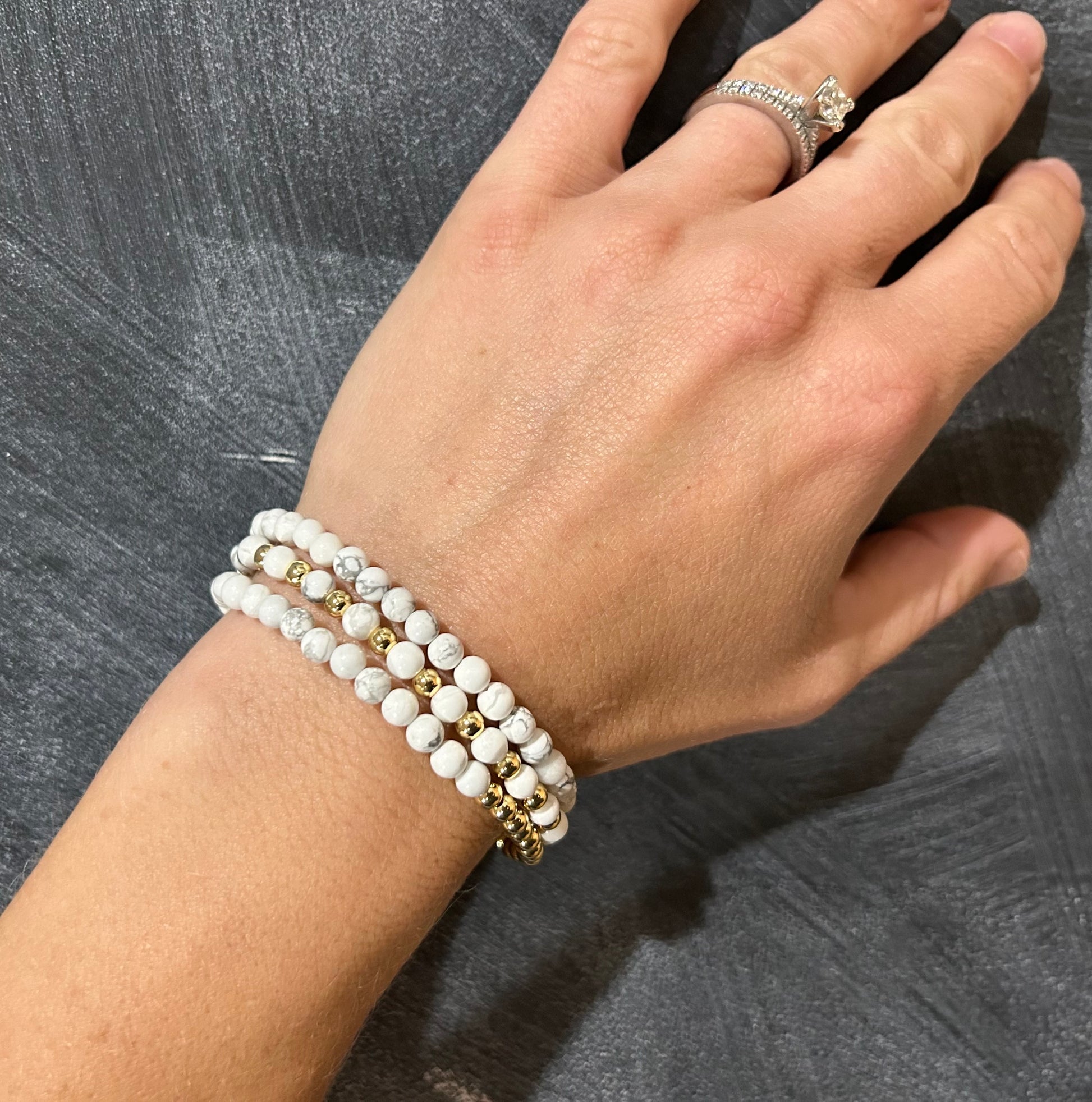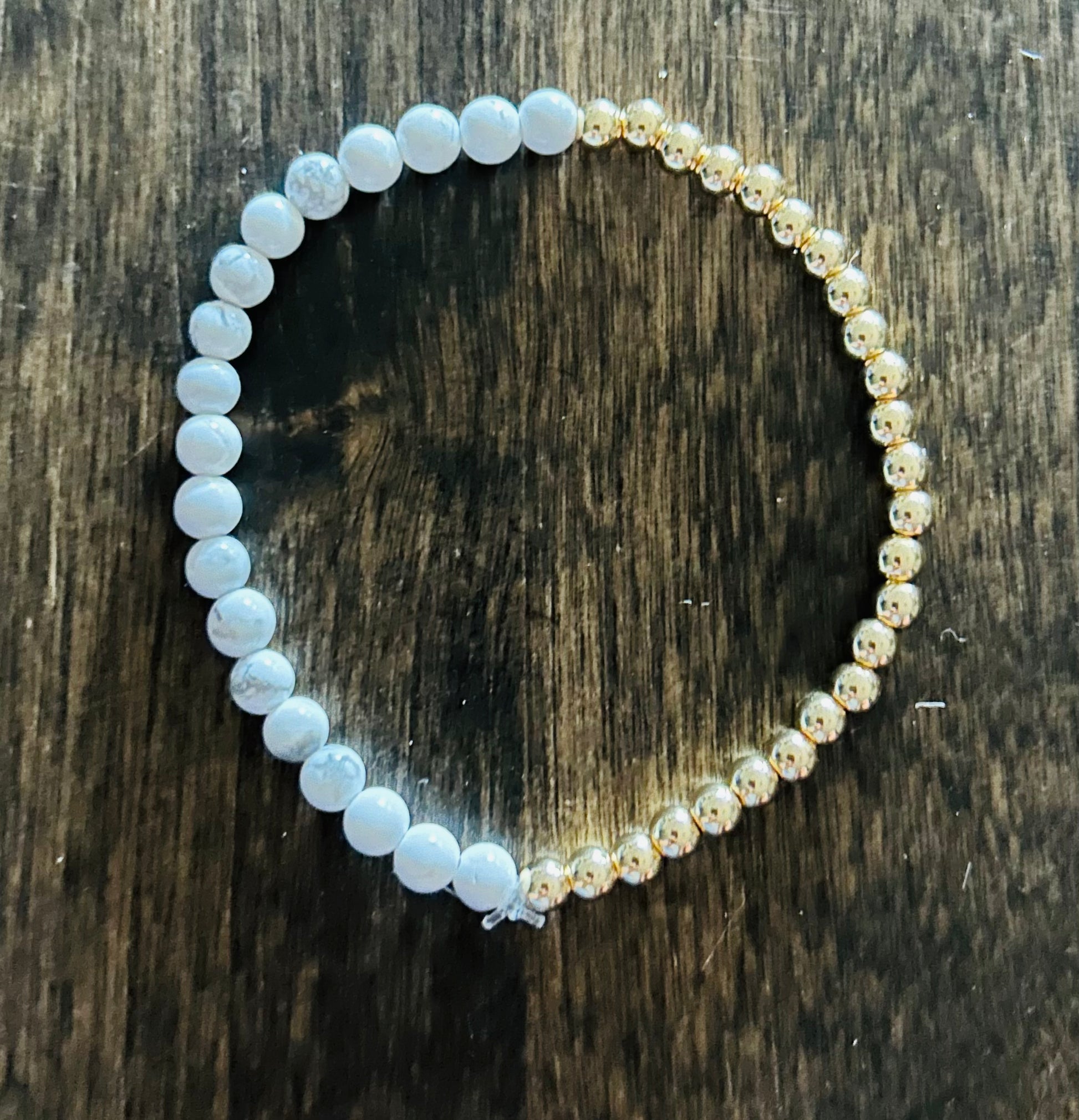 This adorable gold and glass beaded bracelet is perfect to dress up or down for your any day wear, a great stack bracelet!