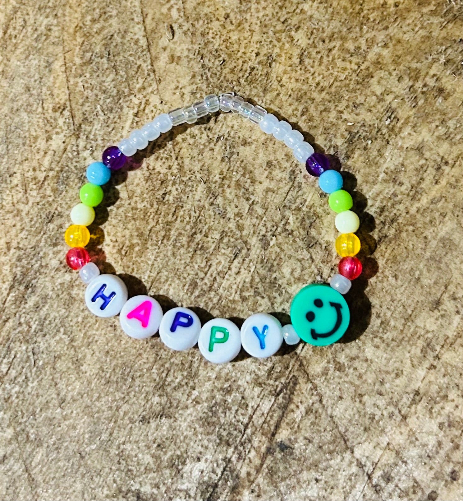 This adorable bright plastic beaded bracelet is perfect for you little girl!