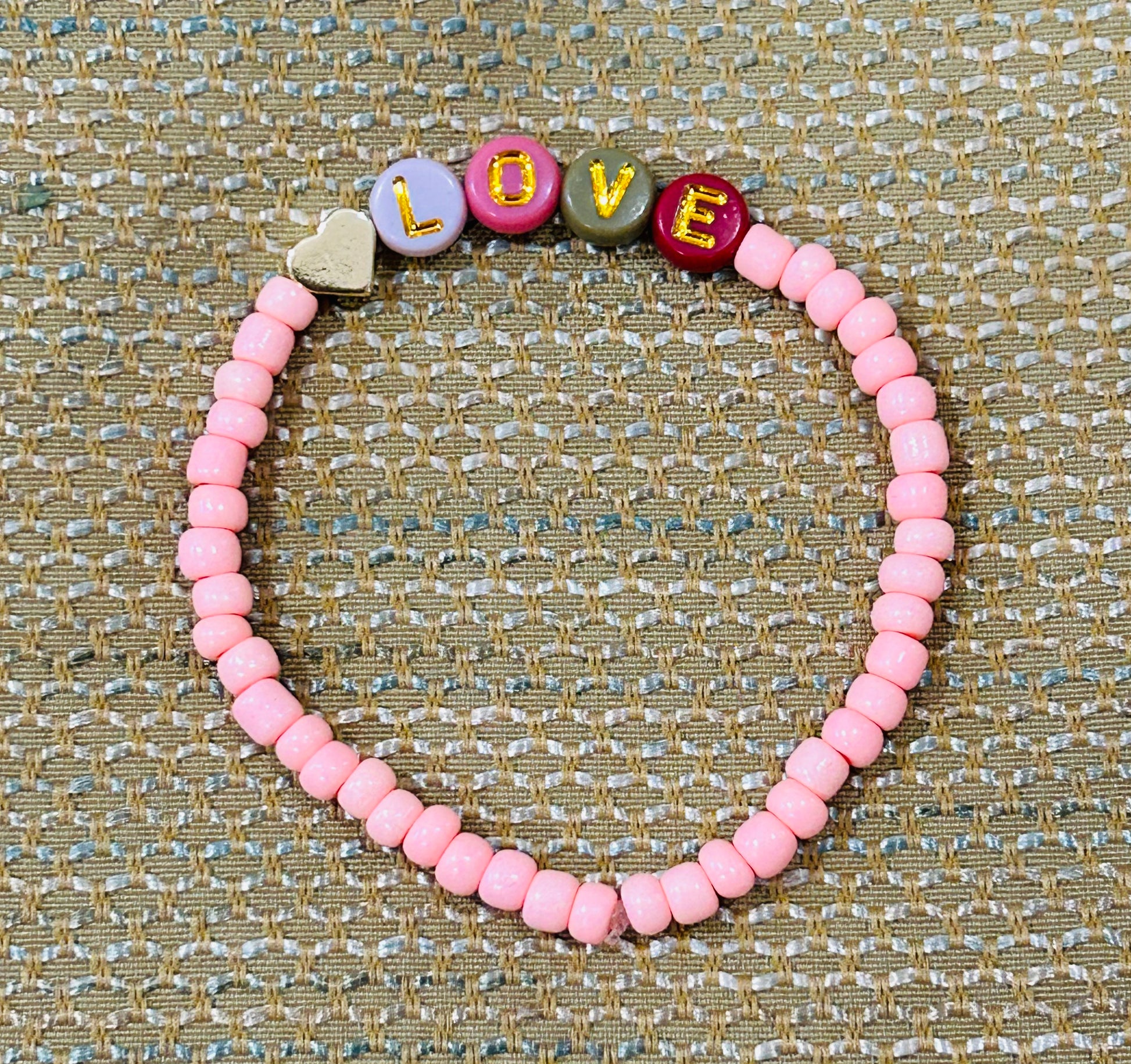 8mm gold heart, 4mm glass beads