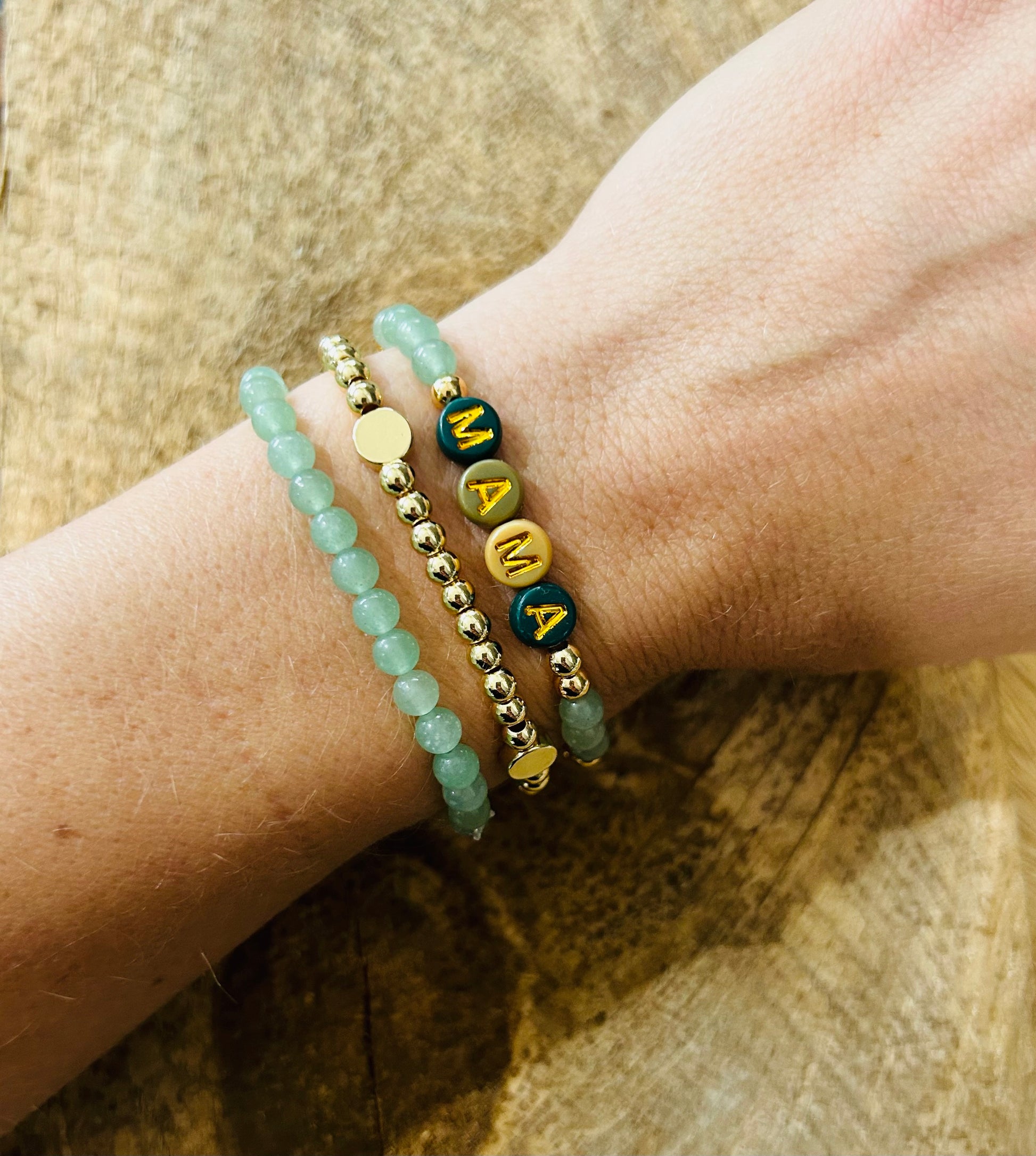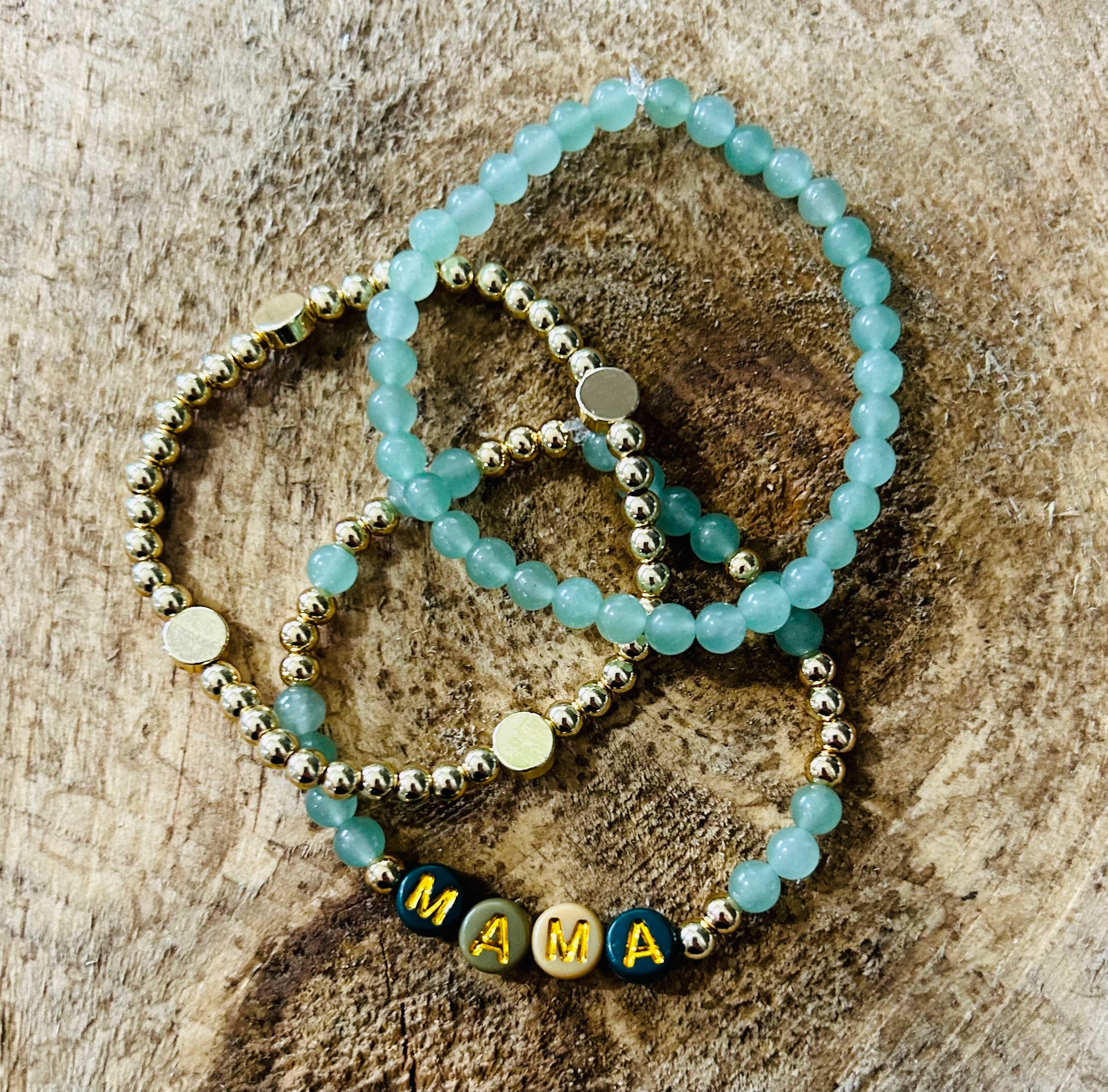 This adorable gold and blue glass beads stack is perfect to dress up or down for your any day wear.