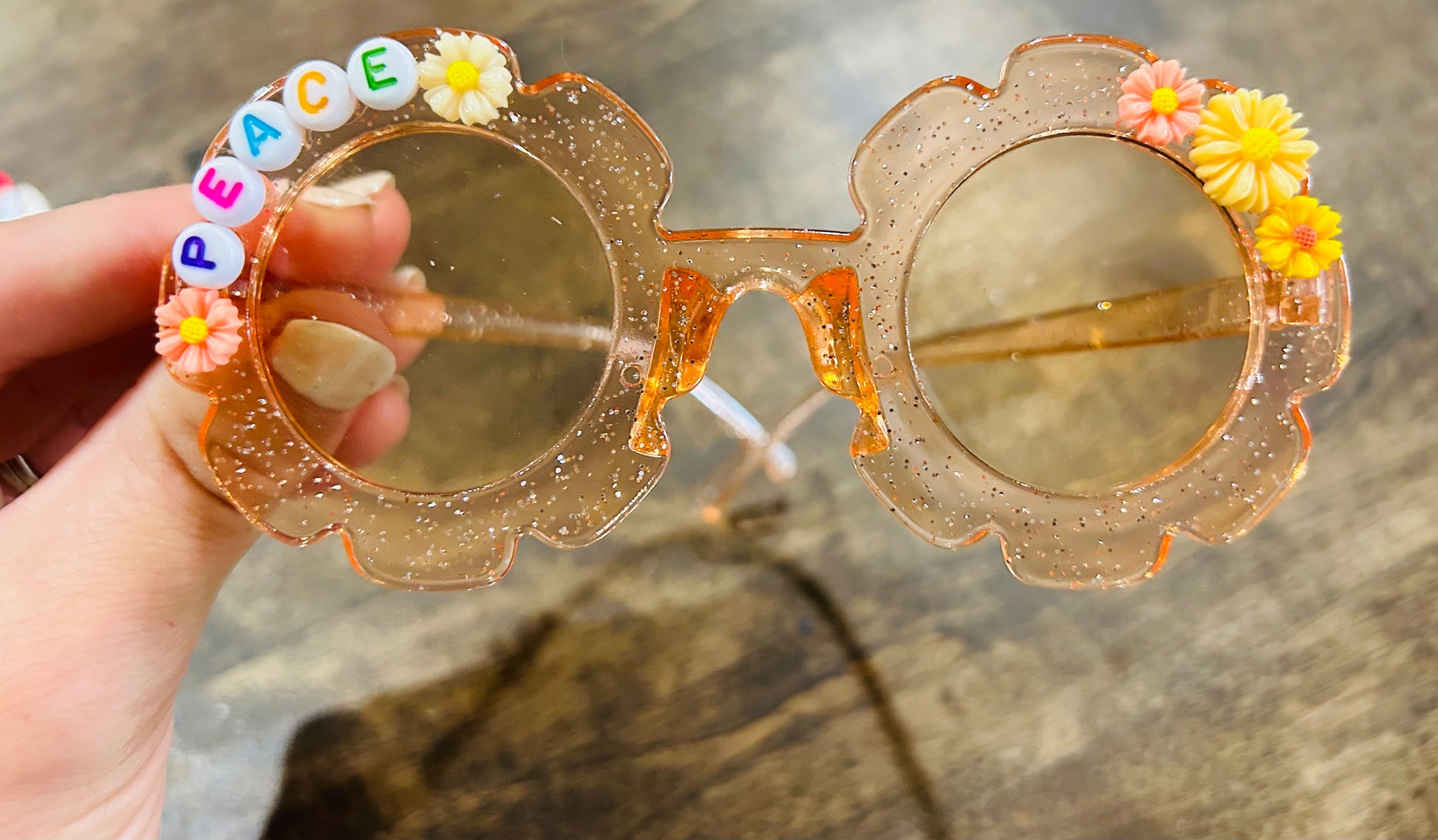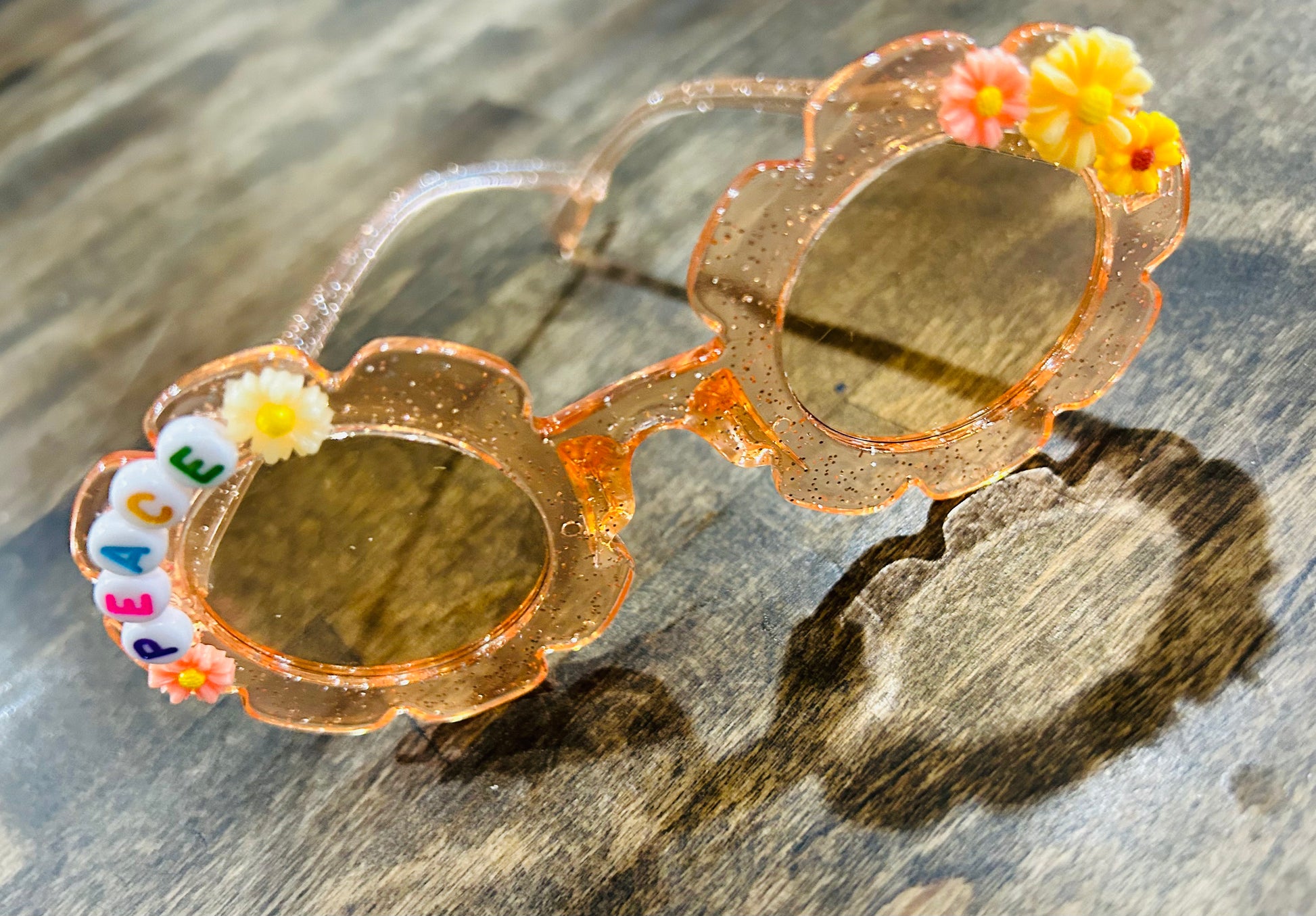 These adorable clear sparkly yellow sunglasses are perfect for a little girl to style! When the suns out the shades are on.