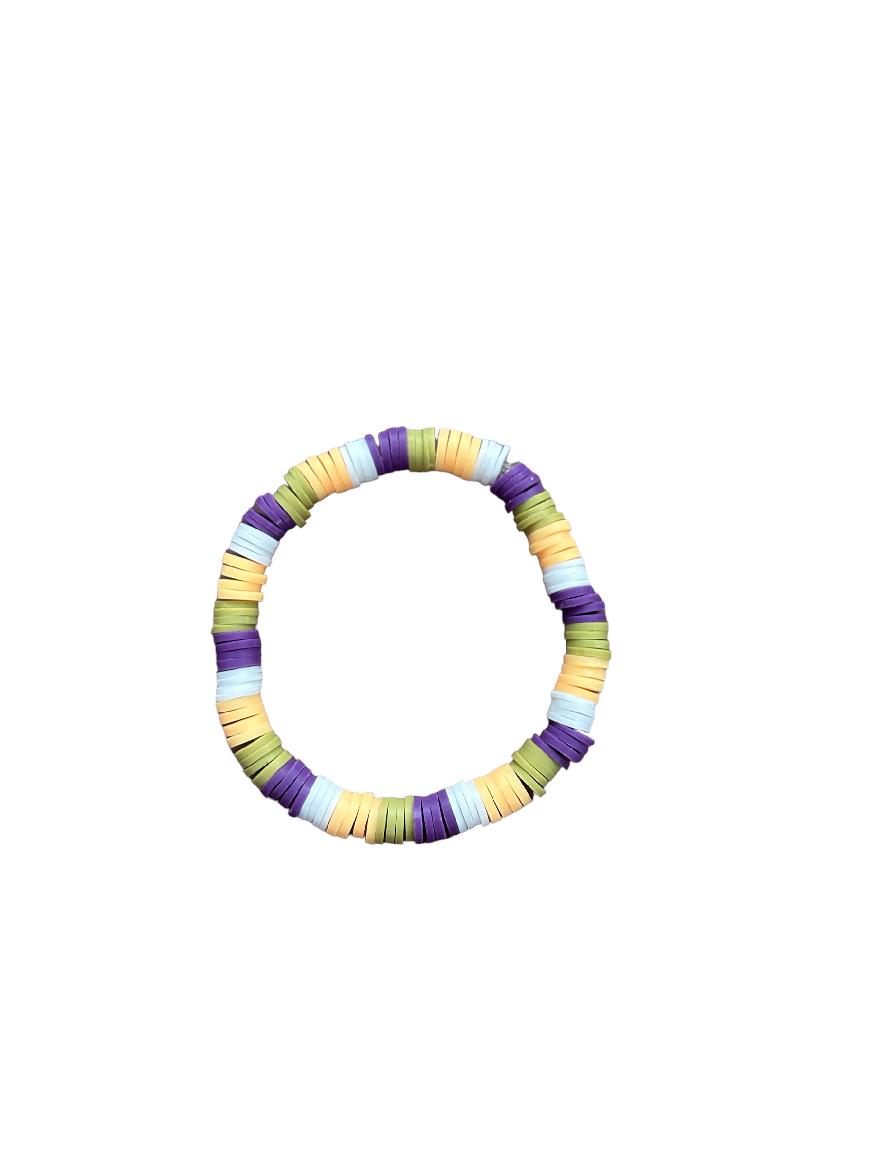 Purple, Green and white clay beads