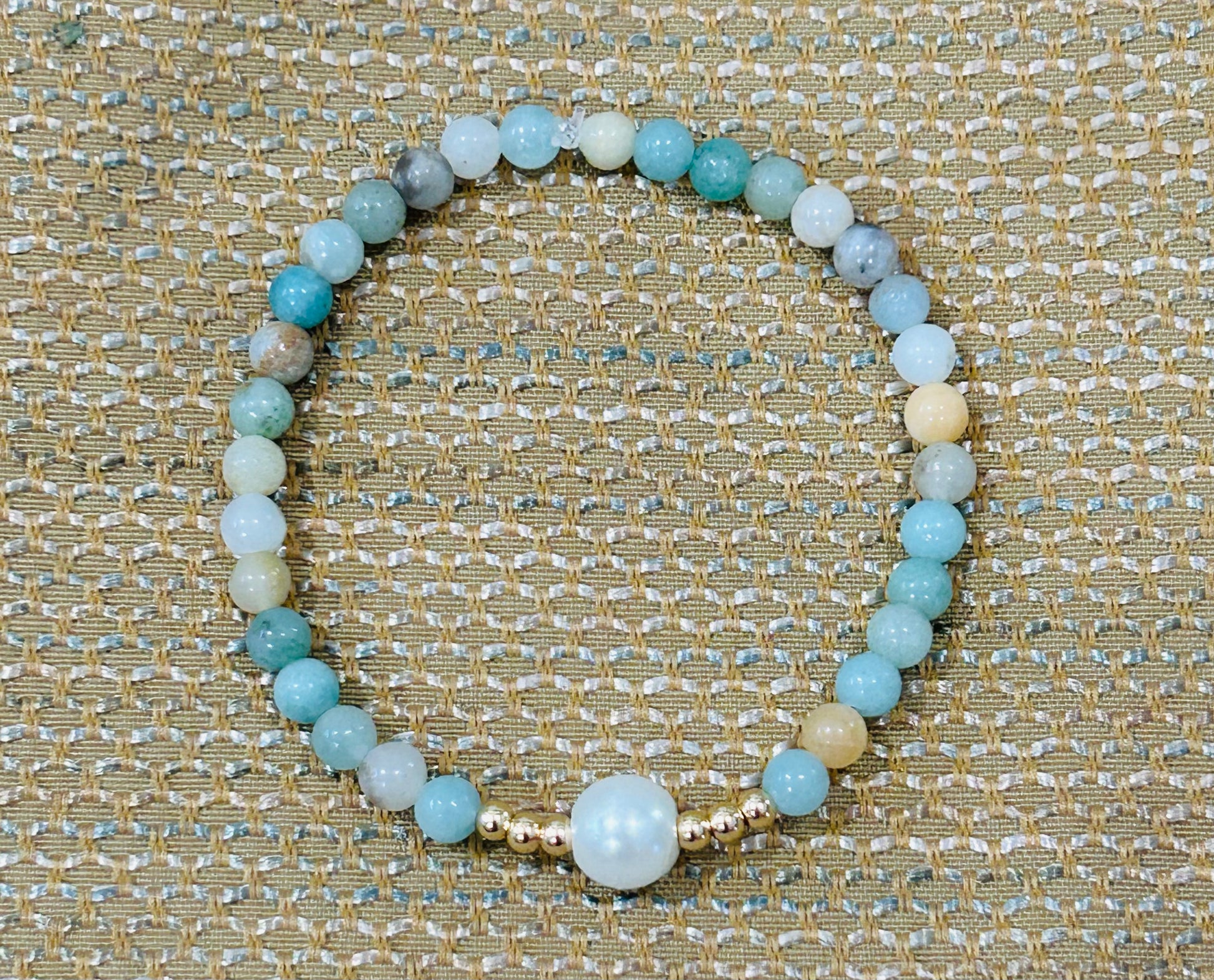 4mm glass beads, 3mm gold, 8mm pearl