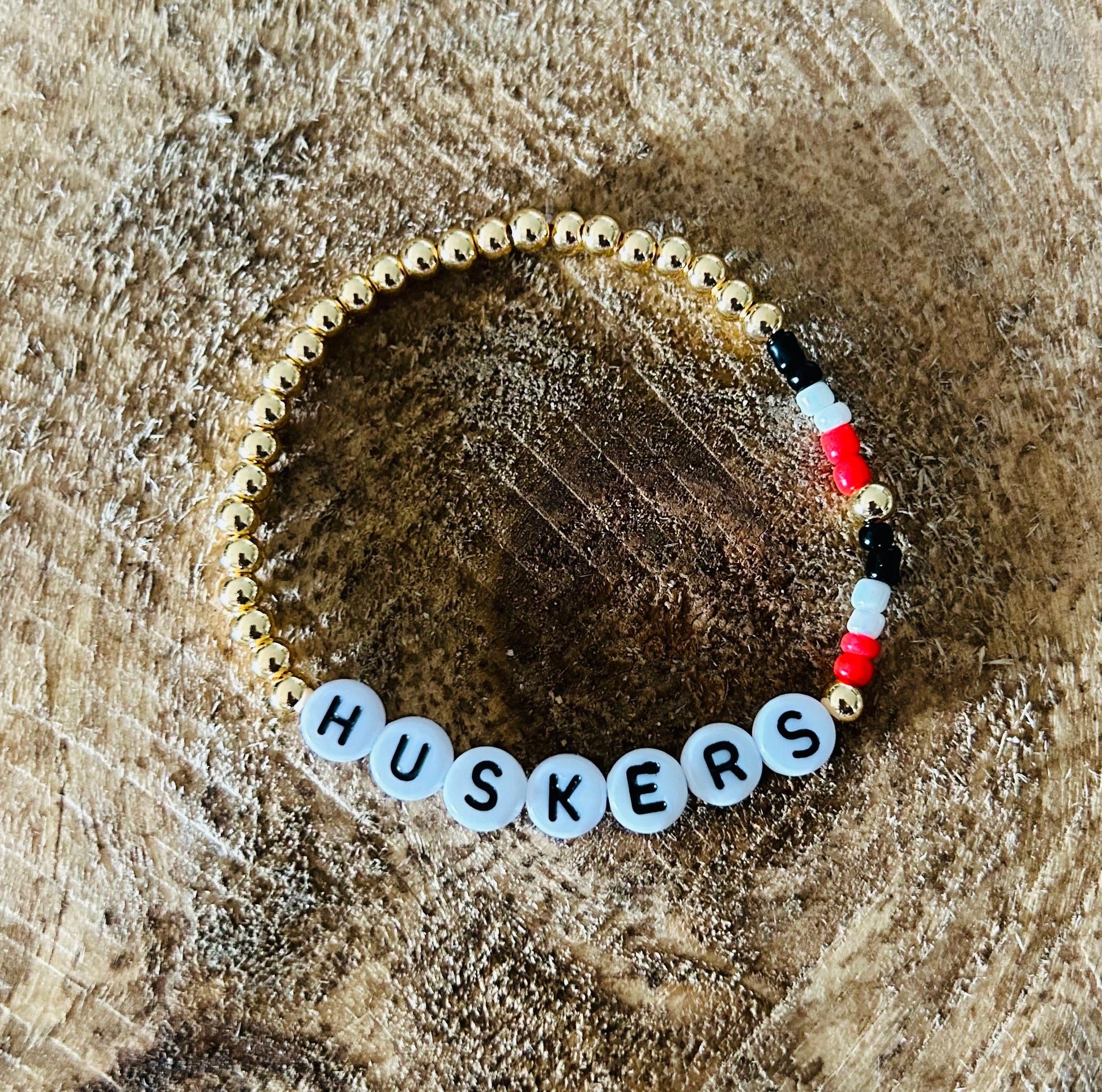 This adorable gold and glass beaded bracelet is perfect to dress up or down for your any day wear or to a football game!